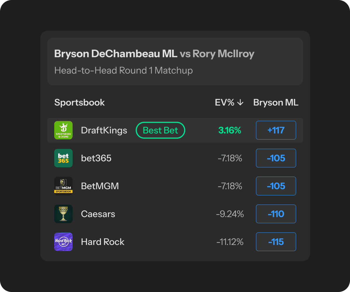 If most sportsbooks agree that Outcome A is favored at -130 but 1 sportsbook has Outcome A priced at +110, that’s a +EV bet — meaning it’s likely underprice and profitable in the long-term.